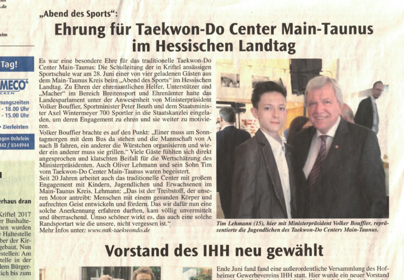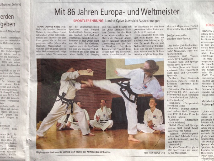 Bruchtest 'Stefanie Modjesch 1.DAN während der Sportlerehrung am 21.01.2016 im Landratsamt Hofheim