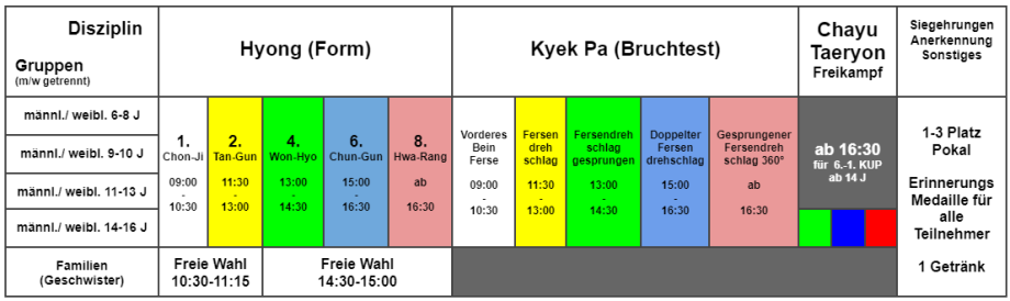 Die Disziplinen & Zeiträume entnehmt ihr bitte aus der nachstehenden Liste